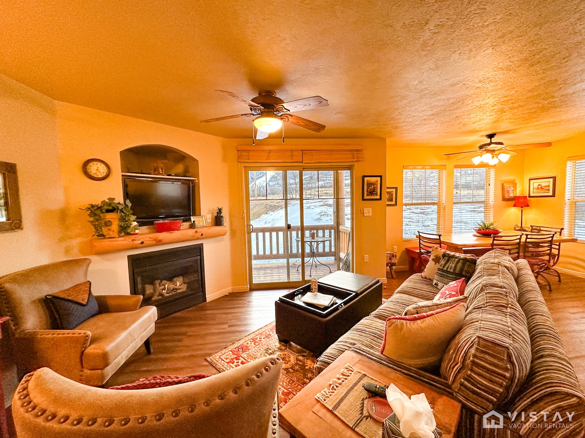 Escápate a tu campamento base para vivir aventuras al aire libre. Ubicación perfecta para esquiadores, excursionistas y fans del Festival de Sundance. A pocos pasos de los telesillas y de los senderos. A 15 minutos a pie o en autobús gratuito de los restaurantes, museos, teatros y tiendas de la histórica calle principal. Sumérgete o nada en el jacuzzi compartido de temporada y en la piscina climatizada. Relájate en el patio privado. Tienda de comestibles, alquiler de equipos y Starbucks al otro lado de la calle. Disfruta de las noches en la ciudad y luego acércate a la chimenea. La aventura te espera: reserva y relájate.