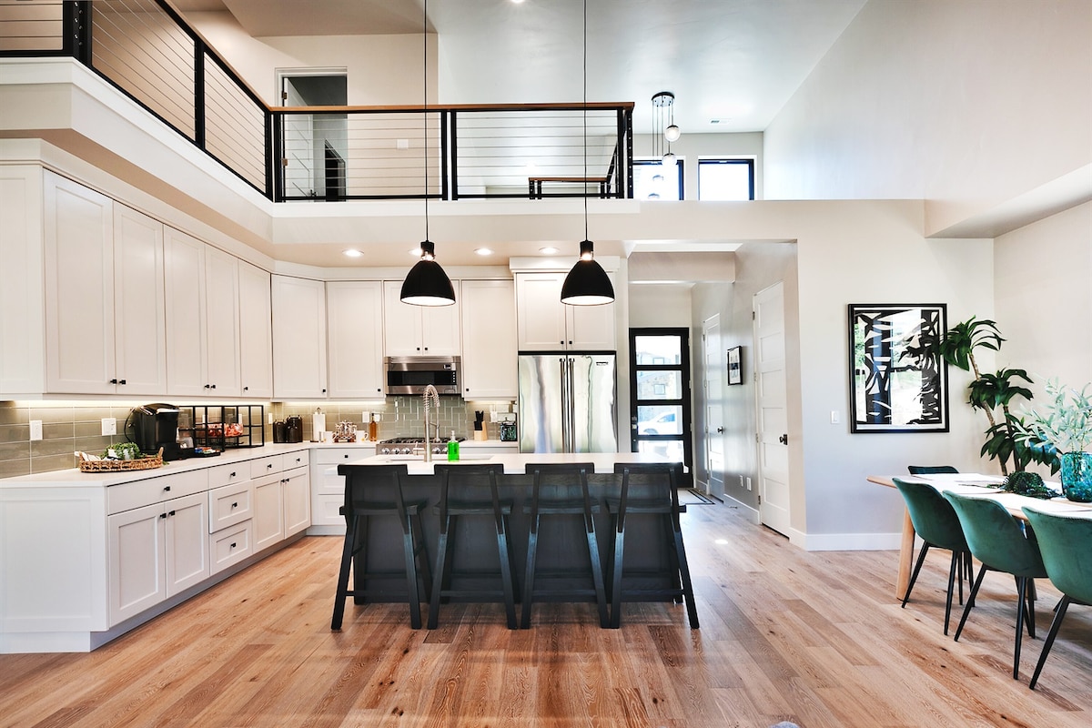 Brand new, professionally decorated, two primary bedrooms and dedicated workspace with large monitor. LOW cleaning fee, we welcome short and long term stays. ☞ 8-Person Hot Tub ☞ Free Shuttle/5 min drive to Deer Valley Gondola ☞ Scan QR for 3D tour ☞ Fire pit, grill on the back patio ☞ Chef's kitchen, Viking appl ☞ Garage for 2 large cars ☞ Great for multiple families and large groups ☞ High end mattresses, sheets and towels ☞ Large SMART TVs Perfect year round location for all activities.