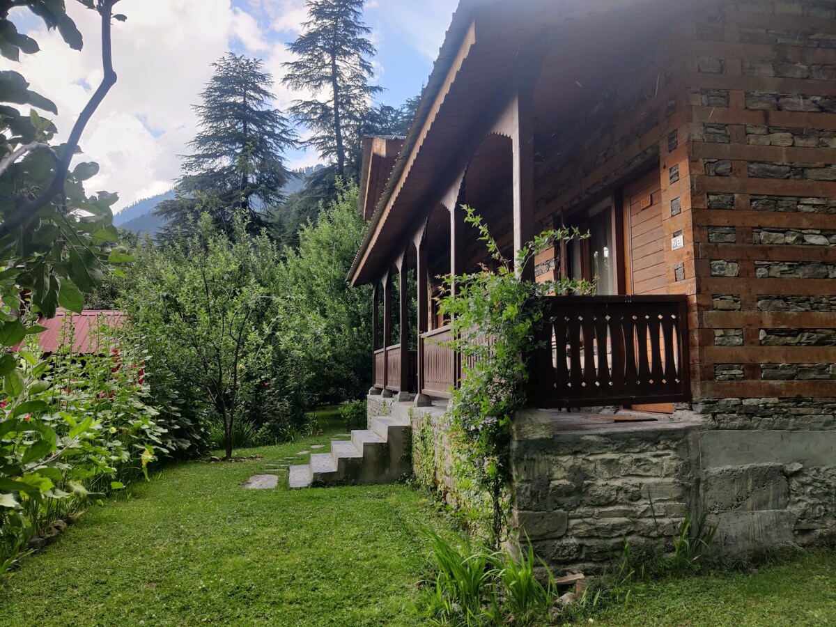 ¡Hola! La cabaña es una unidad de pvt. en nuestra tierra, hecha naturalmente con una exquisita puesta de sol, picos nevados y vistas al río Beas. Naggar es la parte más ancha del valle de Kullu con vistas impresionantes y estamos ubicados en el centro aquí. El castillo de Naggar, el templo Tripura Sundari y Krishna están cerca. Manali y Vashisht están a 20 km. También servimos comidas y refrigerios vegetarianos en nuestra casa. No somos una unidad de hospitalidad comercial, sino un espacio alternativo para artistas y cualquier persona que esté buscando una experiencia de viaje diferente.