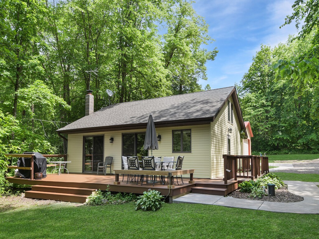 Escapada remota, tranquila, silenciosa y extremadamente privada a orillas de un río protegido, ¡a solo 1,5 horas de las Ciudades Gemelas! Incluso el hermoso paseo hasta allí es relajante. Entra en un mundo de paz y calma en lo profundo del bosque. Prepara deliciosas comidas en una cocina moderna de alta gama bien surtida, juega en el río, relájate en la sauna o disfruta de una hoguera. Esta no es una cabaña típica, sino un ecooasis espiritual con una mezcla ecléctica única de estética moderna, rústica, nativa americana y japonesa.