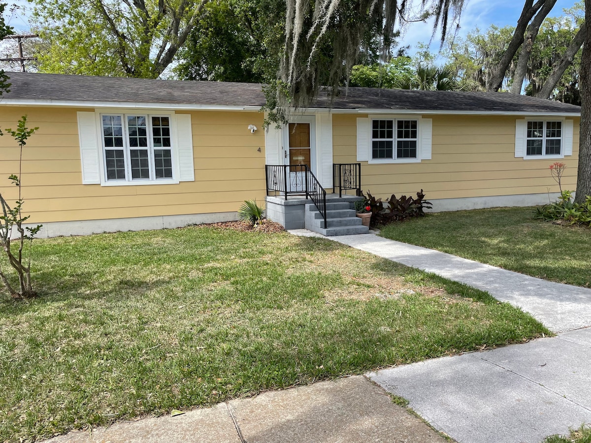 Come stay in this completely renovated, beautiful second floor, pet-friendly one bedroom apartment with a large fully-equipped eat-in kitchen. A spacious balcony with rocking chairs. Shared use of the fabulous back yard with picnic tables, BBQ grills, and bicycles! One parking space guaranteed. Best part: The location! About a five-minute walk to historic downtown and Flagler. Super comfy queen size 4-post bed. Pet fee is $40 per dog per stay (max of 2 dogs).