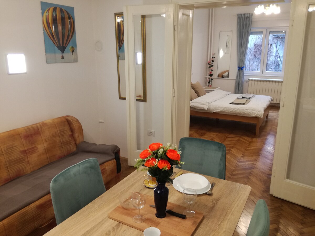 Este apartamento de 80 metros cuadrados tiene dos dormitorios divididos por una gran cocina/comedor/sala de estar. El departamento está ubicado a poca distancia de los principales sitios turísticos de Belgrado: Asamblea Nacional, Museo y Teatro, calle Knez Mihajlova, Fortaleza Kalemegdan, Skadarlija (el barrio bohemio). Los huéspedes pueden encontrar varias opciones de comida y bebida en restaurantes, cafeterías y pubs cercanos. Algunos de los restaurantes mejor valorados se encuentran en esta área. Hay una tienda de comestibles 24/7 en la esquina.
