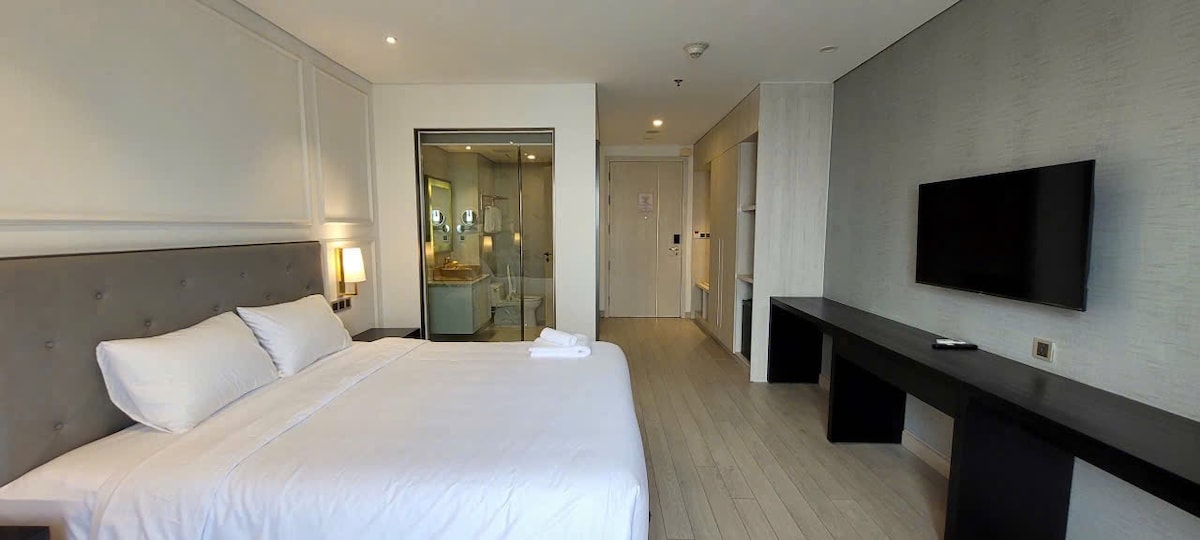 Este es un apartamento ubicado en el complejo hotelero Wyndham Danang Golden Bay de 5 estrellas. El departamento es operado independientemente por el propietario. Por lo tanto, el precio ofrecido por el anfitrión es flexible y atractivo. El alquiler es solo la mitad del precio de un hotel de 5 estrellas, pero se te proporciona una habitación limpia con comodidades equivalentes. Aquí, te sentirás como si estuvieras experimentando unas vacaciones en un lugar lujoso y tranquilo.