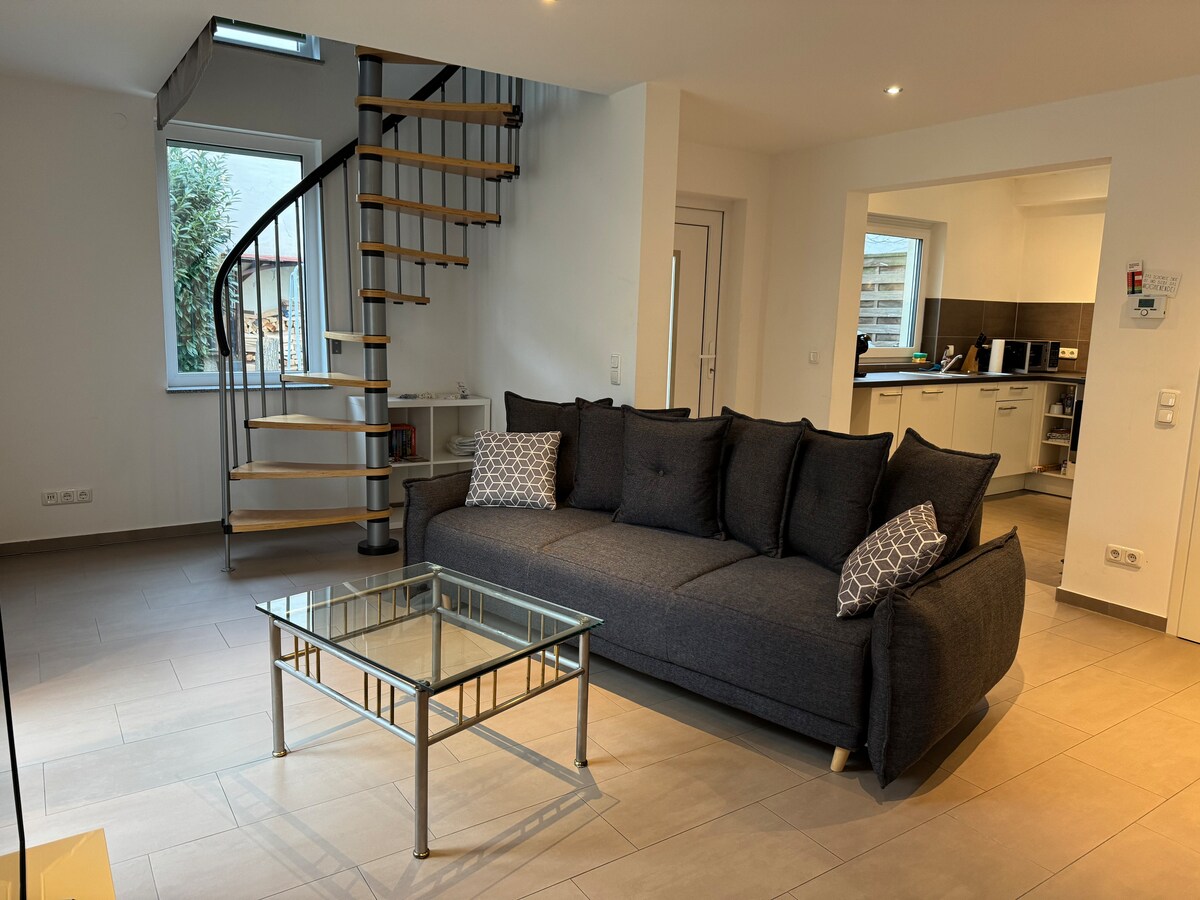 Disfrute de un apartamento de 2 habitaciones decorado con buen gusto y atención al detalle, ¡totalmente equipado! Vivirás en una planta baja en la hermosa ciudad vinícola de Hochheim am Main, con una plaza de aparcamiento incluida. 67 m², 2 habitaciones, cocina totalmente equipada con lavavajillas, ropa de cama y toallas, wifi, configuración de oficina en casa, sofá cama adicional en el salón, televisores de pantalla plana en el salón y en el dormitorio, lavadora-secadora en el baño, calefacción por suelo radiante, terraza, aparcamiento y mucho más.