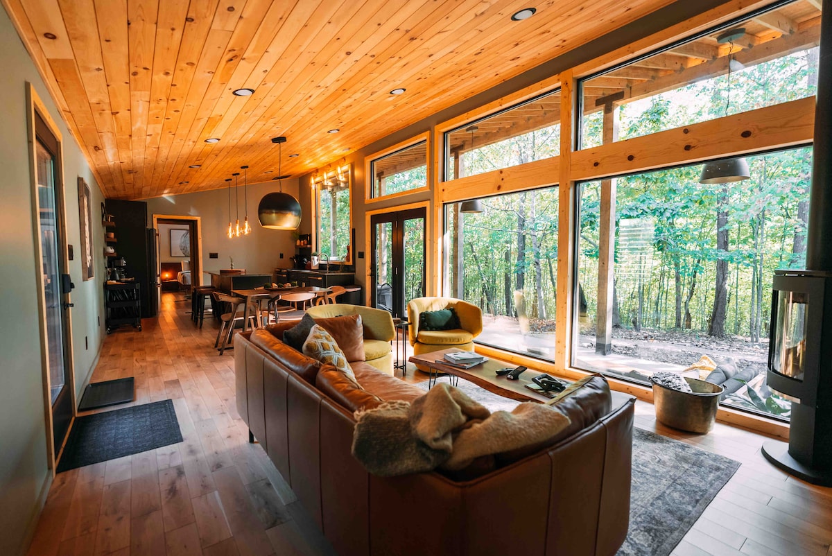 Te damos la bienvenida a The Wren en Hillside Amble. Entra en este tranquilo oasis inspirado en los colores de las cuevas. Todos los espacios tienen amplias ventanas que llevan el exterior a la comodidad de tu habitación. Ya sea que te sumerjas en el jacuzzi, descanses en nuestras hamacas o te relajes junto a la fogata, esperamos que te encante la sensación de tranquilidad que hemos curado. Situado a solo 15 minutos de Cedar Falls y Ash Cave, y a menos de una hora de Columbus.