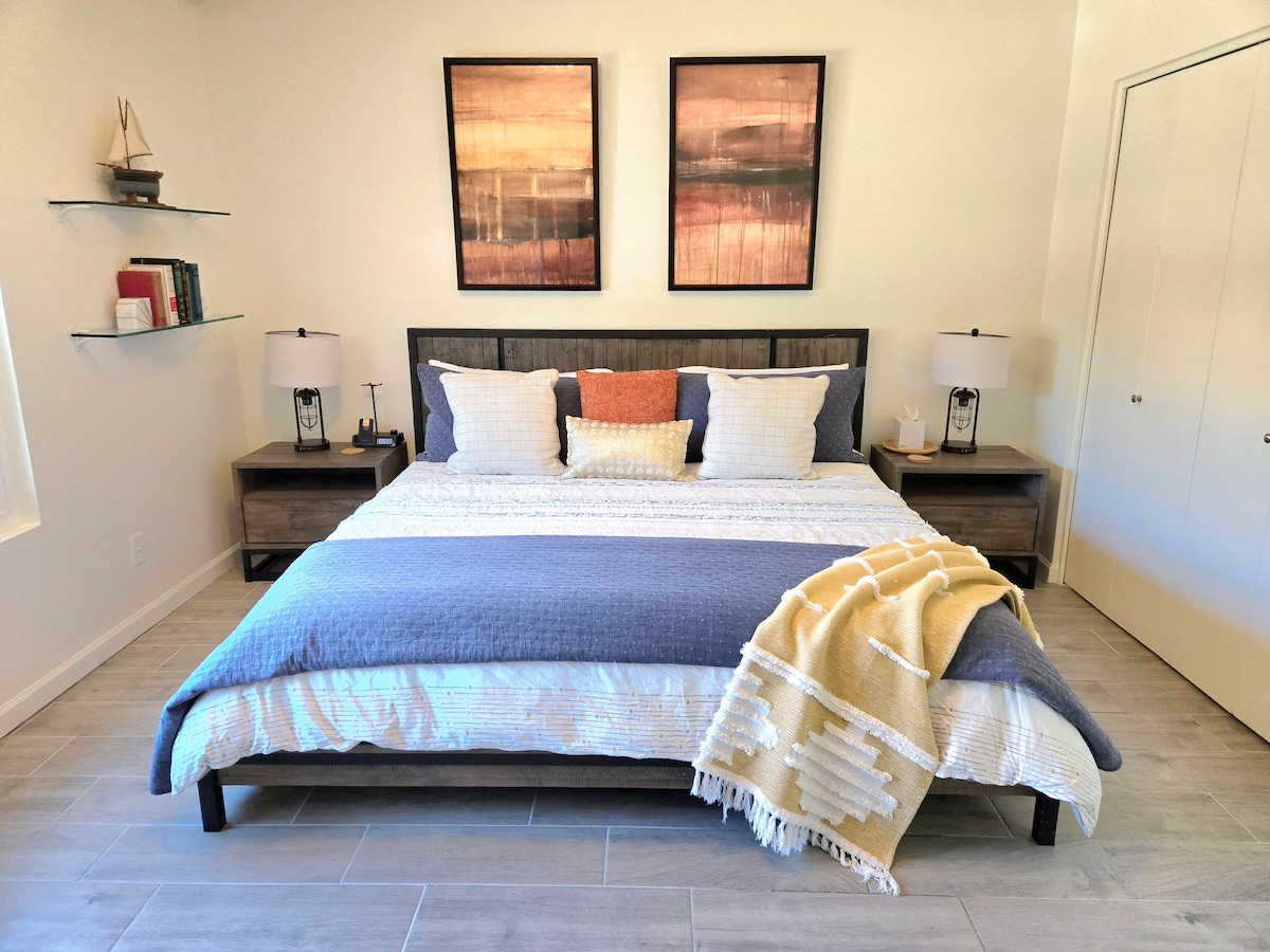 Casita con una cama tamaño king y cocina pequeña ubicada en un tranquilo vecindario de Mesa. La habitación es un espacio exclusivo de Airbnb en un edificio separado de la casa principal con su propia entrada, baño privado y cocina pequeña perfecta para un desayuno rápido o un bocado. Estamos a pocos minutos de las autopistas locales. A 15 minutos en coche de Scottsdale, Tempe, Chandler y Gilbert.
