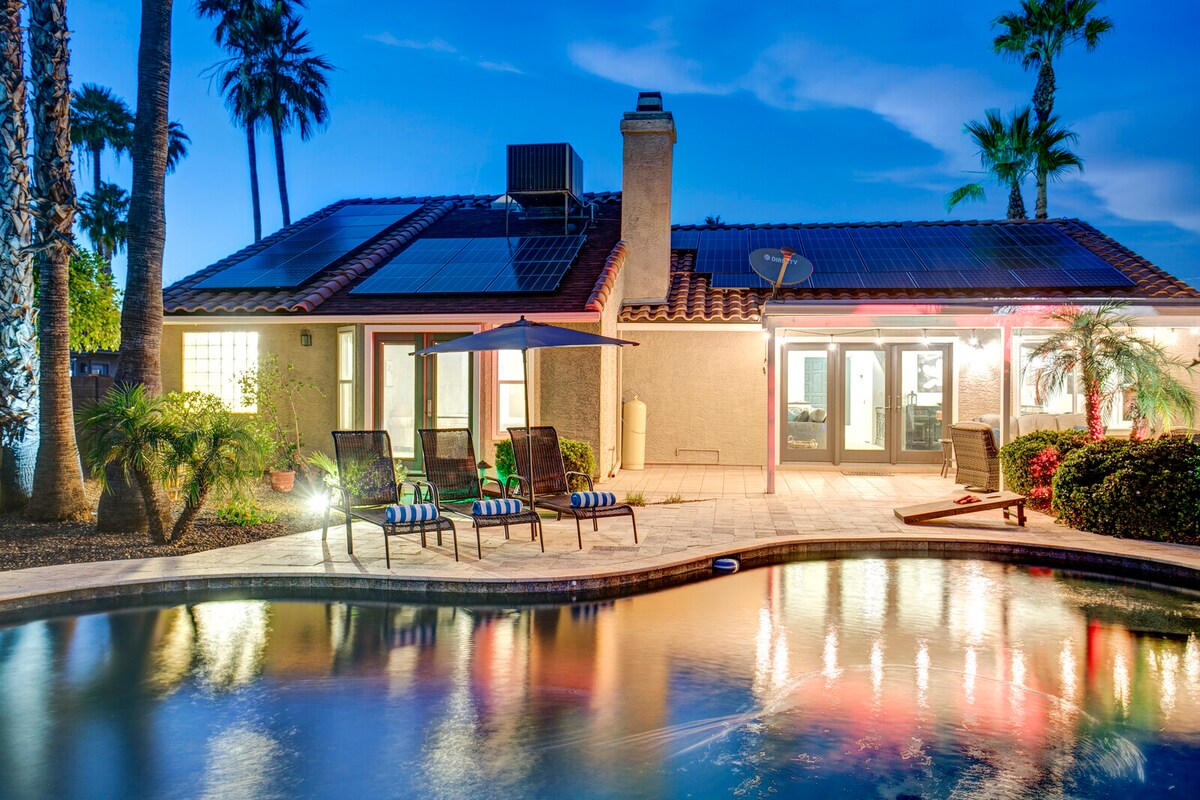 Discover the pinnacle of Tempe's luxury living in this exquisite 3-bed, 2-bath, 1,660 sq. ft haven. Recently remodeled, it features chic interiors with a billiards table, 58' inch Smart TVs, & a modern kitchen with stainless steel appliances. Outside, indulge in the self-cleaning saltwater pool, hot tub, & a full motion patio Smart TV. With its convenient location, just a short 10-min drive to the airport, exploring Tempe and Scottsdale's attractions is effortless from this central retreat.