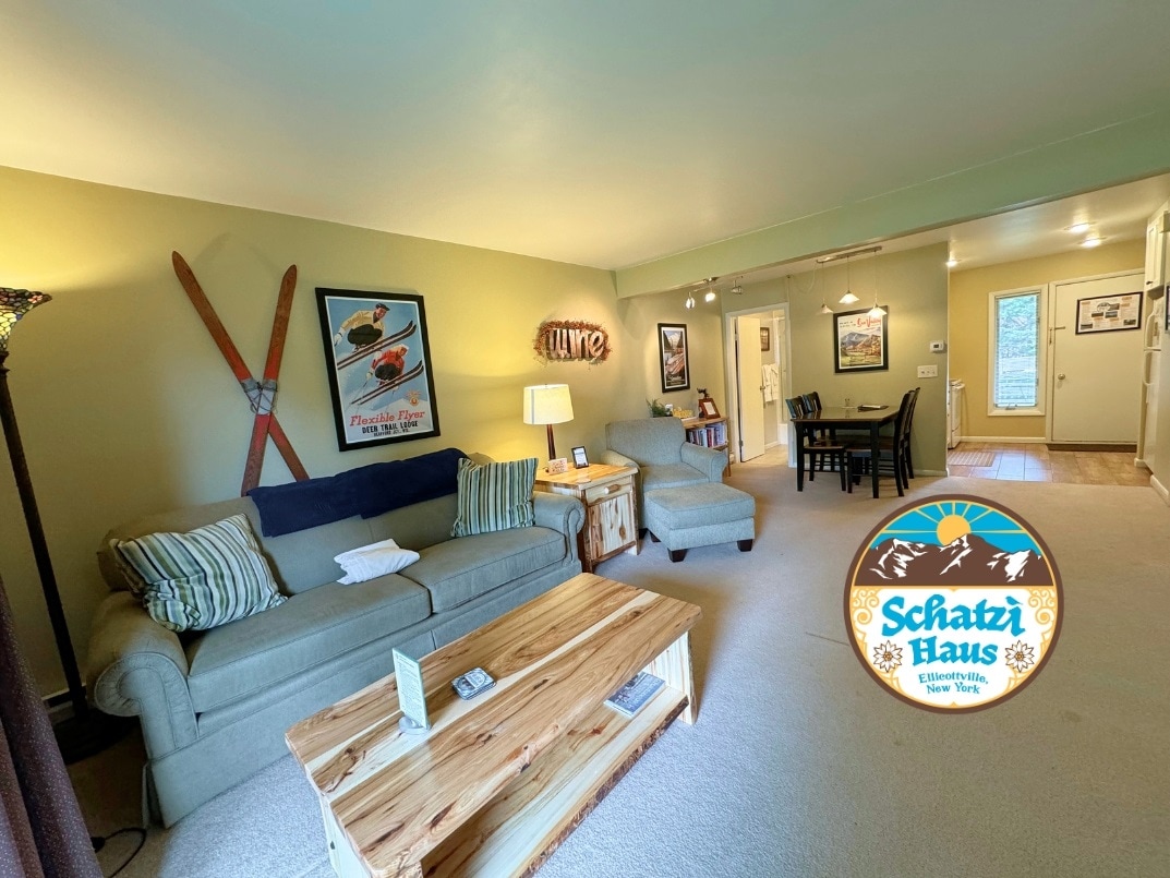 Disfruta de una casa adosada reformada con buen gusto y convenientemente ubicada para divertirte en cualquier época del año. A poca distancia a pie de HV (o toma el servicio de traslado). Fácil acceso a pie al pintoresco pueblo de Ellicottville. El espacio: Seis huéspedes pueden disfrutar de esta acogedora casa adosada. Loft privado de 1 dormitorio. Cama Murphy súper cómoda en la planta principal y sofá cama. Cocina totalmente surtida y mesa de granja para disfrutar de las comidas. Baño actualizado. Pintoresca sala de estar con acceso al patio para disfrutar del paisaje al aire libre. Vista de la pista de esquí desde el patio.