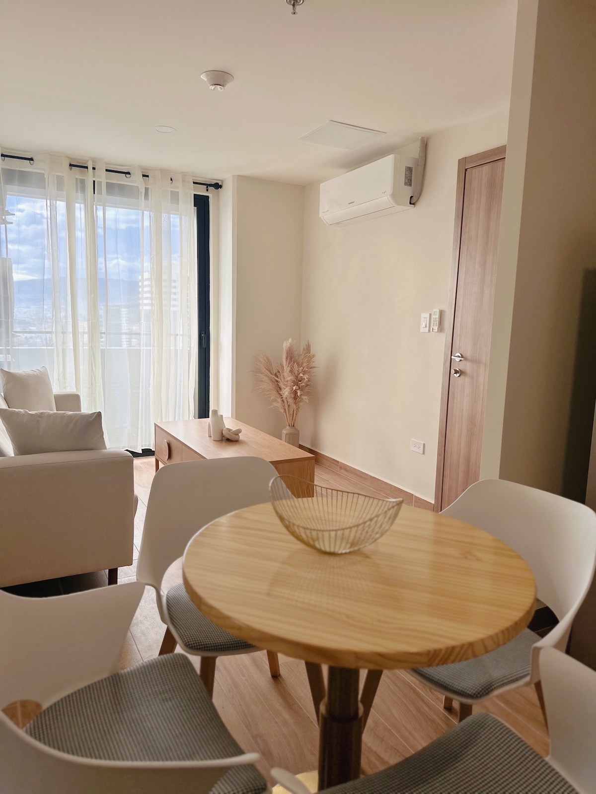 Apartamento finamente amueblado y confortable. Contamos con todas las amenidades necesarias para hacer que tu visita sea placentera. Ubicado en Ecodistrito cerca de la Villa Olímpica, Estadio Chochi Sosa, Coliseo Nacional de Ingenieros y de la UNAH; cuenta con una vista espectacular hacia la Basílica de Suyapa. A tan solo 3 minutos caminando encontraras supermercado y una plaza con variedad de restaurantes. Disfruta de una experiencia con estilo en este alojamiento céntrico.