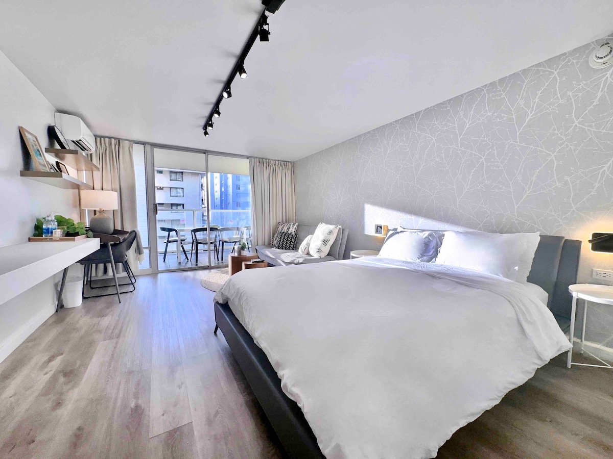 Estudio chic y contemporáneo con cama queen - Central Waikiki~