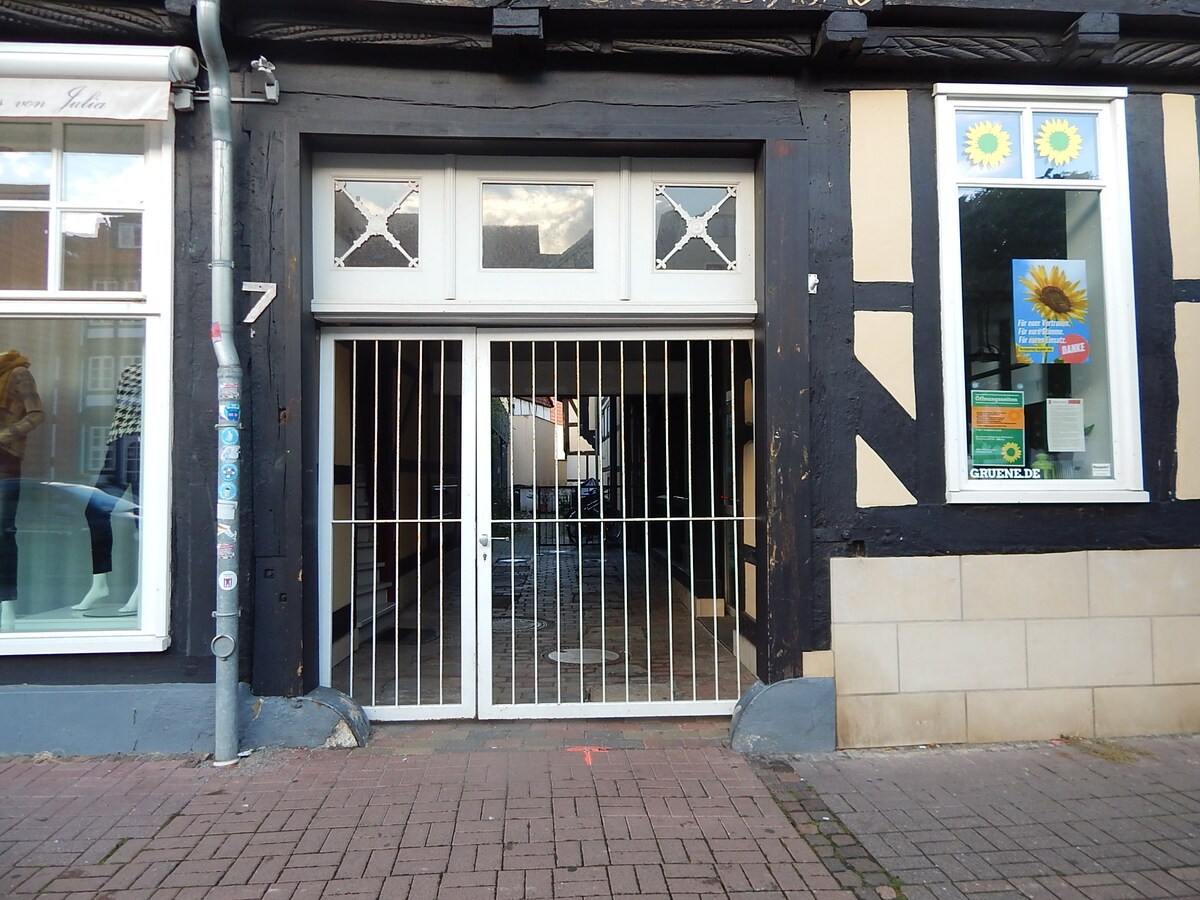 Os ofrecemos un luminoso y acogedor apartamento en el centro de la ciudad a la sombra de la venerable Iglesia de la Trinidad de Wolfenbüttel. El apartamento está recién reformado y consta de sala de estar (sofá cama) y dormitorio (cama doble 1,40x2,00), baño y cocina. El apartamento está en el segundo piso. Se encuentra en una casa de entramado de madera del siglo XVII. en Landeshuter Platz. (Casa esquinera) La estación de tren está a unos 10 minutos. Al autobús 5 minutos. ¡Patio interior y jardín disponibles!