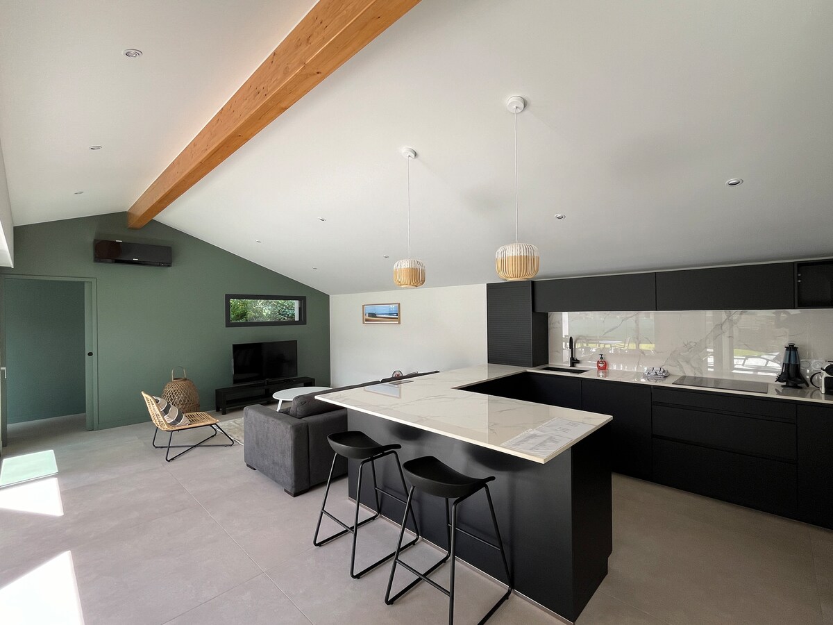 El apartamento "L 'Etale" ha sido totalmente renovado y pensado para recibir a los viajeros que buscan una experiencia única en el corazón del centro de la ciudad de Hossegor. ¡Permanecer en "l 'Etale" es la garantía de tener éxito en sus vacaciones y poder disfrutar a pie del lago, el parque, el golf, las tiendas, las playas y muchas otras actividades! Tras la crisis actual, estamos implementando un hogar desinfectante muy preciso para la seguridad y comodidad de todos.