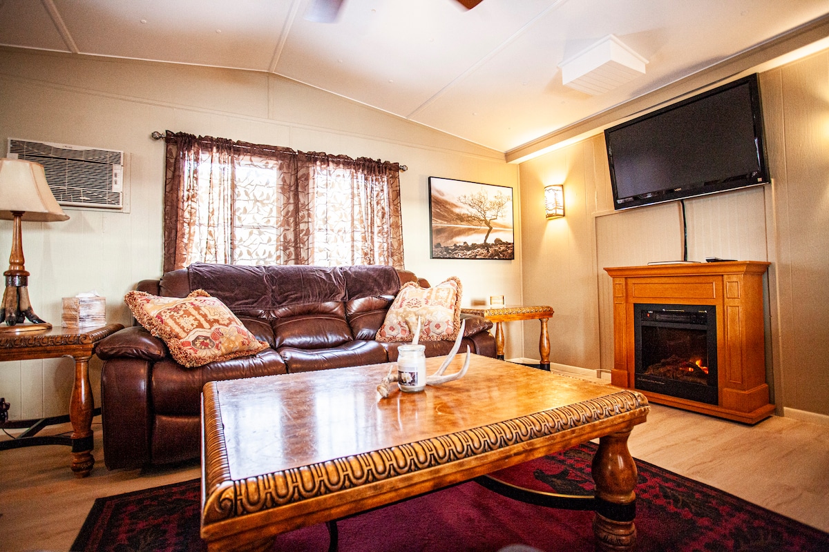 ¡Deleita tus ojos con esta impresionante vista sin obstáculos de la cordillera de West Elks y Grand Mesa desde nuestro gran porche delantero! La casa cuenta con 3 dormitorios, 2 baños, sala de estar con sofá cama, cocina, comedor y una segunda sala de estar en la planta baja. En el exterior encontrarás un patio con chimenea donde puedes sentarte alrededor de una fogata y disfrutar de la increíble vista de Needle Rock y las montañas circundantes. También ofrecemos un sitio para autocaravanas con conexión completa.