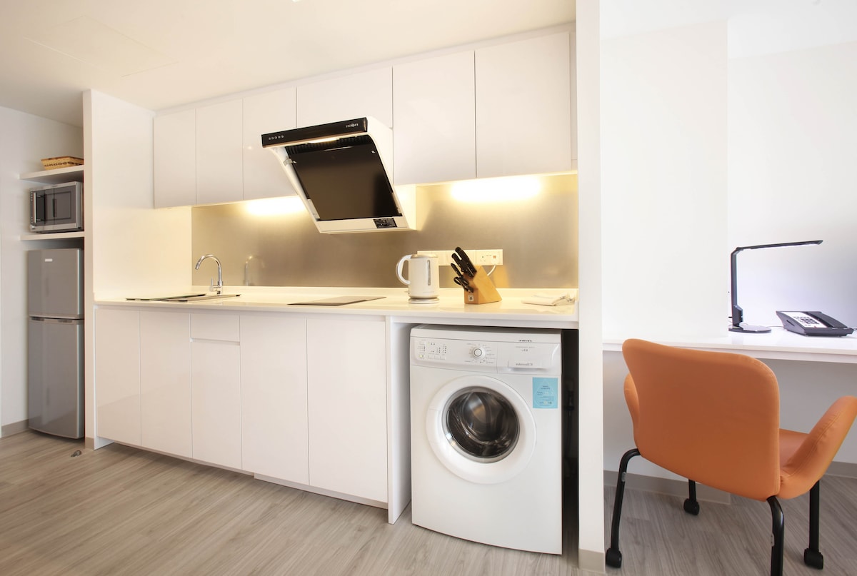 El alojamiento ideal para viajeros de negocios y de placer que buscan comodidad y conveniencia. Vuelve a colocar en tu deliciosa pero funcional habitación con una cama tamaño king, cocina americana bien equipada y escritorio de estudio/trabajo. Amueblado con accesorios elegantes, crea una estancia memorable y placentera en nuestro apartamento estudio. De 3 a 5 minutos a pie de Bras Basah, Cityhall y Bugis. ¡Perfecto para trabajar desde casa con internet de alta velocidad!