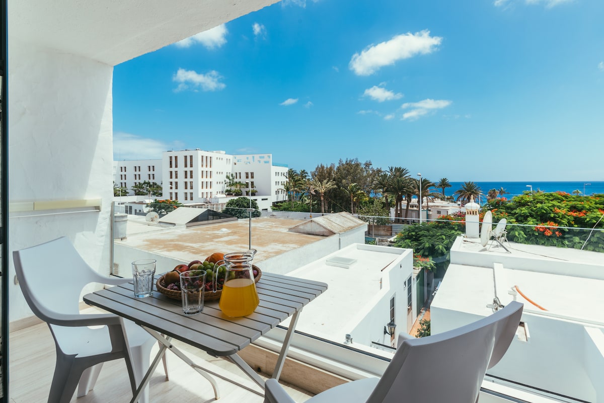 Nuevo apartamento en Puerto del Carmen, ubicado en un complejo muy tranquilo con piscina comunitaria con vistas al mar. Lo mejor de este apartamento es su terraza, dispone de cama redonda para tomar el sol, parrilla exterior para cocinar y una gran mesa para comer o trabajar con vistas al mar. En el interior dispone de salón con smart TV internacional, sofá muy confortable y una pequeña mesa de desayunos. La cocina está totalmente equipada: horno, microondas, frigorífico, sartenes y menaje.