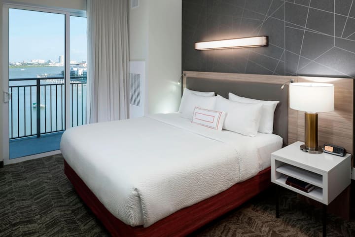 1 cama king size, 1 sofá cama