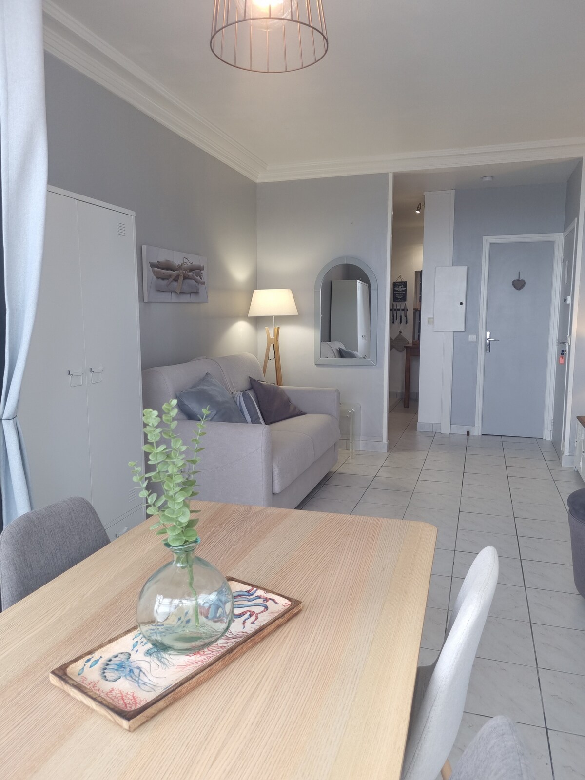 Muy bonito apartamento luminoso, totalmente reformado, con magníficas vistas al mar, al estuario del Dives y a la punta de Cabourg. Con todas las comodidades y perfectamente equipado, disfrutará en familia o con amigos de una hermosa sala de estar con cocina equipada y una bonita zona de estar. 2 bonitas habitaciones: 1 cama king size/literas para niños (90 x 175). Se proporcionan almohadas y edredones con protección. Se proporcionan sábanas y toallas adicionales bajo petición (no incluidas en el precio).