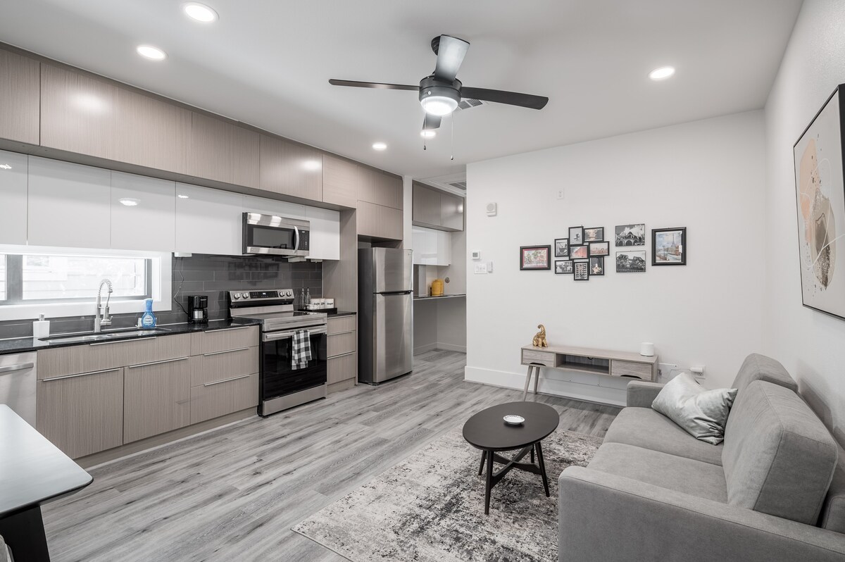 Mi Casita Studio es un refugio en la planta baja cuidadosamente diseñado en el centro de Houston. Este espacio eficiente y moderno ofrece una entrada privada, un lugar de estacionamiento dedicado, una cómoda cama tamaño queen, un espacio de trabajo, wifi rápido, TV inteligente, microondas, Keurig y acceso a la lavadora/secadora en la unidad. A solo 3 minutos a pie del ferrocarril con acceso directo al centro de la ciudad, el Med Center y los estadios, ideal para viajes de negocios, visitas médicas y estancias prolongadas.