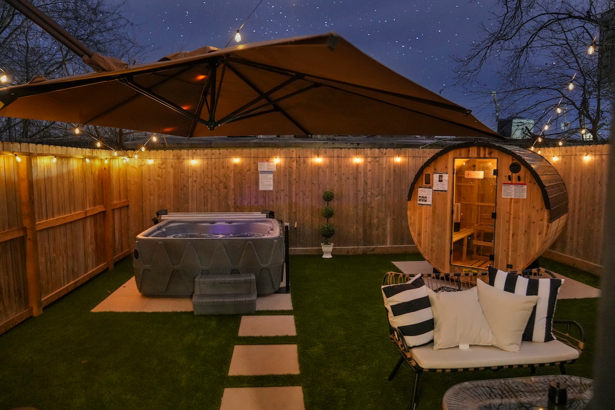 Acogedor en todas las estaciones|Jacuzzi + sauna| cerca del estadio NRG