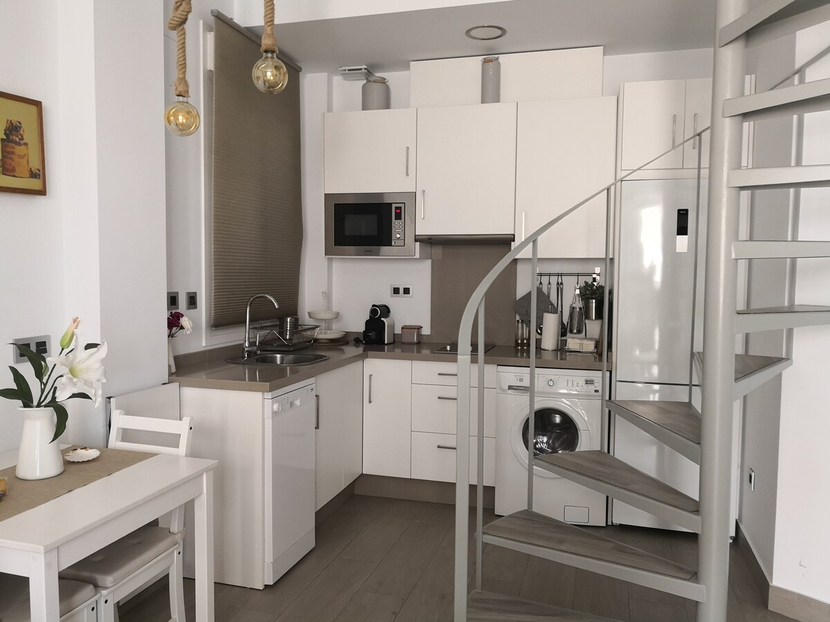Apartamento para adultos y niños mayores de 10 años. No fumadores. Aparcamiento incluido en el precio de la reserva. El Loft se ubica en una bodega jerezana rehabilitada del siglo XVIII. Es un espacio diáfano bellamente decorado y completamente equipado. Está situado en primera planta con ascesor y cuenta con una terraza amueblada de 20 m2 bajo los soportales del patio en planta baja. Es un lugar muy tranquilo para desconectar y disfrutar de la paz y el silencio en un edificio histórico.