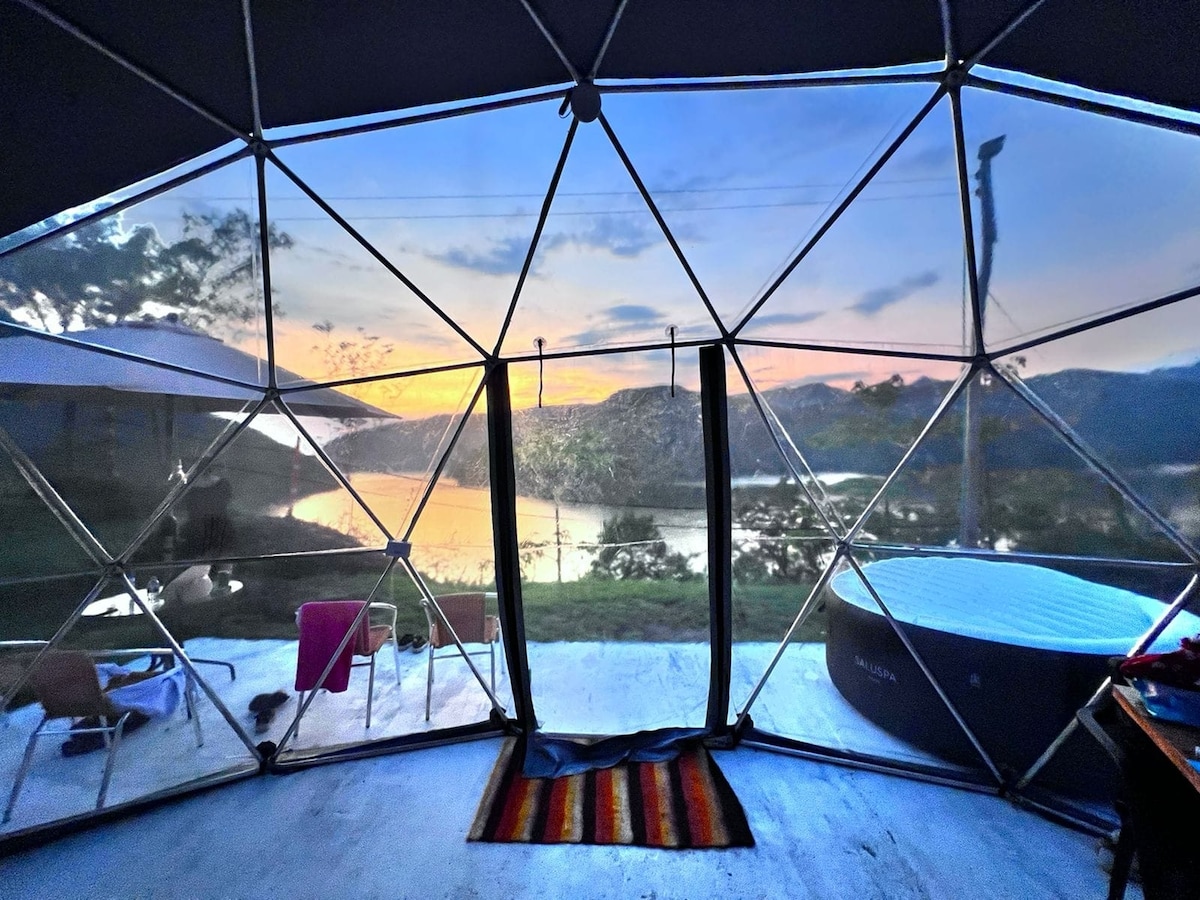 Cabaña tipo domo con vista a la represa de Prado
