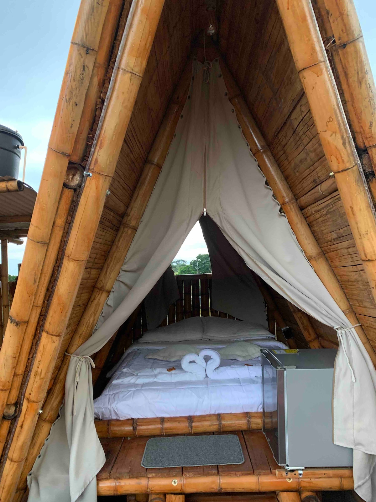 Disfruta de una experiencia de glamping única en medio de la naturaleza. 🌿 Nuestra carpa privada cuenta con una cama queen inflable cómoda, ideal para descansar después de un día explorando la montaña. Tendrás acceso a zonas comunes y senderos naturales. Perfecto para parejas o viajeros que buscan desconectarse y vivir una noche diferente bajo las estrellas.