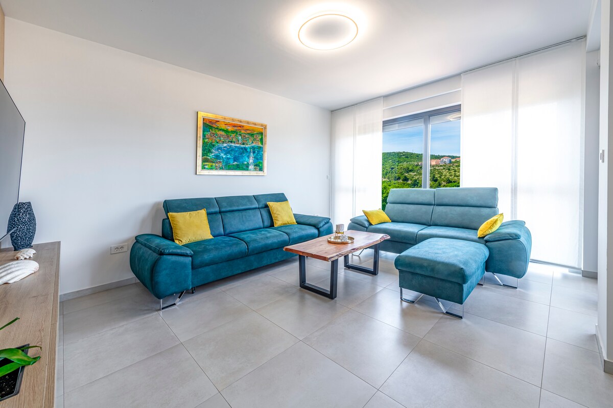 Este exclusivo apartamento tipo ático lo tiene todo: diseño moderno y deslumbrantes vistas al mar. El apartamento está situado en la colina justo encima de la parte antigua de Cavtat, ofreciendo unas vistas increíbles del mar Adriático y del casco antiguo de Dubrovnik, una tranquilidad notable y la comodidad de estar a poca distancia a pie. El apartamento es muy espacioso, con más de 100 metros cuadrados de alojamiento, con 3 dormitorios y 2 baños y está diseñado para alojar hasta 6 huéspedes.