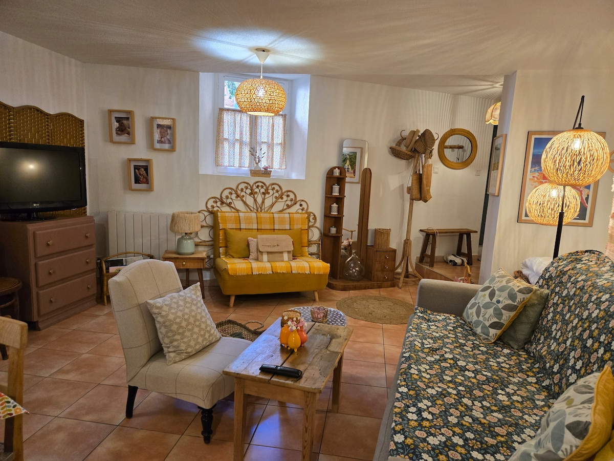 Sumérgete en un ambiente único mediterráneo cerca del centro de la ciudad a pie y a 7 minutos de la playa. La belleza pura de la cal y el hormigón encerado se mezcla con la materia bruta, sublimada por las imperfecciones y el saber hacer tradicional. Un entorno auténtico, cálido y relajante, ideal para relajarse en el corazón de la naturaleza. Frente a un jardín notable clasificado. Disfrute de una decoración mediterránea depurada, que combina comodidades modernas,encanto artesanal, para una experiencia inolvidable.Ideal pareja