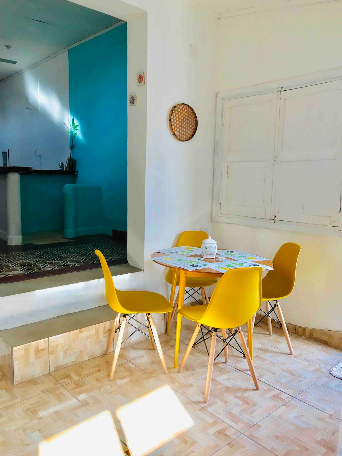 Dos dormitorio con 2 camas (dos camas cuchetas, o cameras) cada uno, en la entrada hay un pequeña cocina con lo necesario para un desayuno o cocinar algo básico (anafe, cacerola, vasos, tasas, cubiertos). También tiene el baño privado. La ventana da al jardín y tiene un acceso propio e independiente . Posee aire acondicionado, mesa y sillas, mesa de luz. Un patio con hermoso jardin tropical y tender con juego de jardin. Wifi .Zona cercana al centro y terminal. Encontraras paz, arte, yoga.🌴🪷🦋