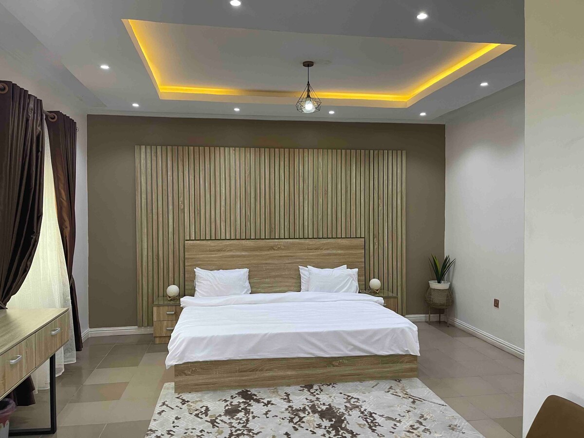 Experience Comfort and Class at Tonelz Executive Hotel Room — where luxury meets relaxation. This stylishly furnished room offers a cozy king-size bed, air conditioning, a flat-screen TV, free Wi-Fi, and an ensuite bathroom designed for your comfort. Guests enjoy 24-hour power supply, security, and easy access to nearby restaurants, lounges, and shopping centers. Perfect for business travelers, couples, or anyone seeking a serene and secure stay in the city.