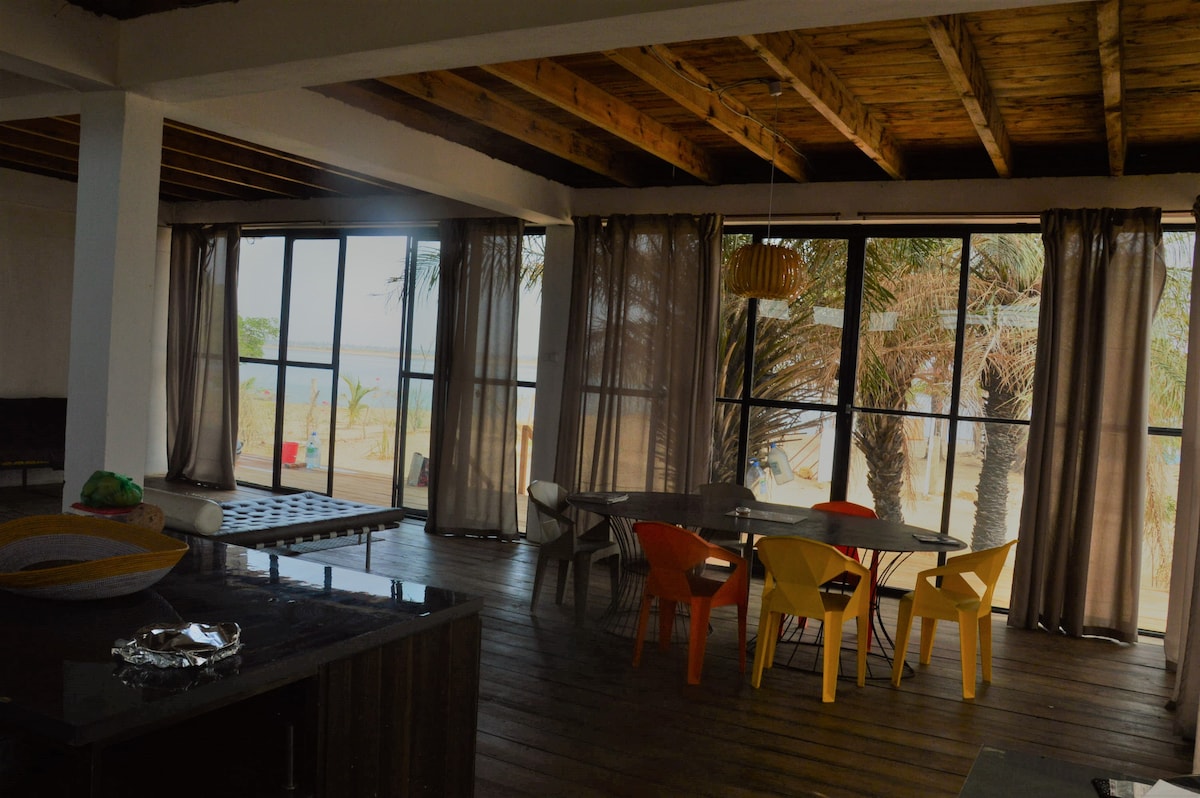 Le damos la bienvenida a nuestra casa de espíritu "cabaña de vacaciones" en el corazón del Sine Saloum en un sitio de gran belleza . La gran zona de estudio tiene capacidad para 1 pareja con 2 hijos y 2 habitaciones adicionales con SDB cada una pueden alojar a 4 personas adicionales . Puesta en 1400 m2 de terreno con los pies en el agua, disfrutará de nuestro pontón privado . Una invitación a soltar para vivir una experiencia única en el corazón de la magnífica reserva natural del Sine Saloum .