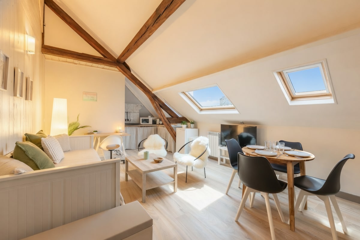 L'Antiquaire es un alojamiento con encanto situado en el corazón del centro histórico de Ruan.Este apartamento, ubicado en un edificio con entramado de madera, revela un entorno auténtico y cálido. Las vigas antiguas y las paredes de piedra vista le dan a esta casa un carácter innegable. Los viajeros, seducidos por su ubicación ideal, pueden descubrir los tesoros de la ciudad de Ruan, mientras disfrutan de un alojamiento cómodo y cálido. L'Antiquaire, una visita obligada en Rouen.