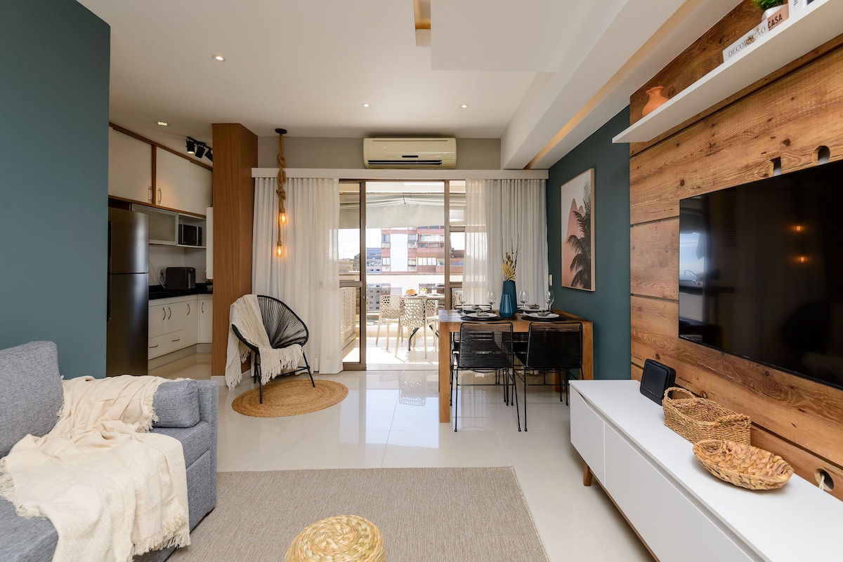 Departamento ★★★★★ de diseño remodelado en 2022 con impresionantes vistas a la playa. Relájate en este lugar elegante y tranquilo con muchas comodidades. Bien decorado con aire acondicionado y NETFLIX en un edificio de Oscar NIEMEYER, el mejor arquitecto brasileño. Hay muchos restaurantes, sushi, vegano, asador, farmacia y mercados, y junto al Windsor Hotel. Ideal para parejas, familias y viajes corporativos. Aceptamos propuestas de alquiler a largo plazo.