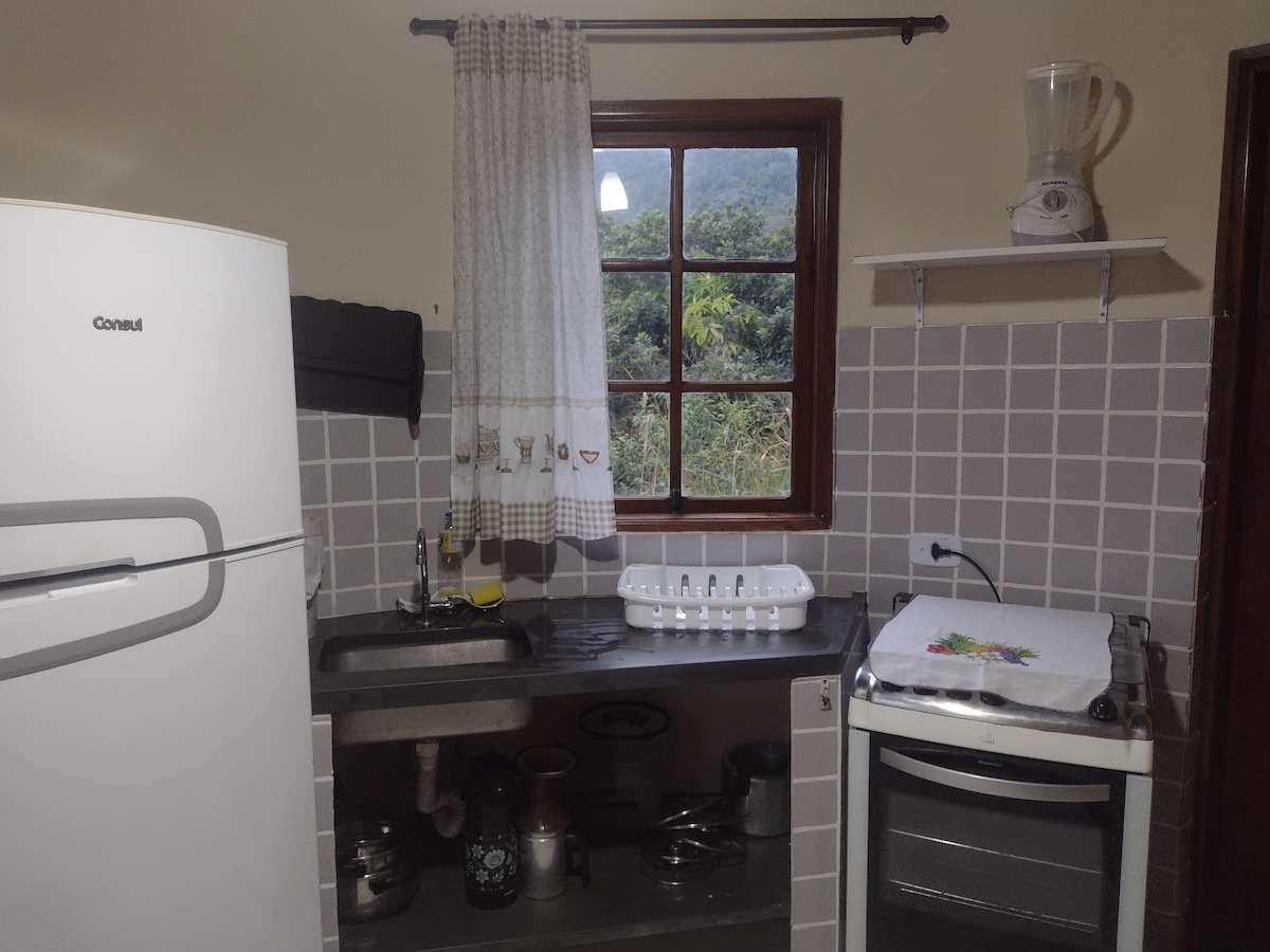 Magnífica vista a 80 metros de la playa de Curral, una de las más bellas y de moda de Ilhabela. CHALET para hasta 3 personas con dormitorio doble, sala de estar, cocina americana y balcón con vista al canal, ¡lugar perfecto para admirar una hermosa puesta de sol! Internet Wi-Fi, Smart TV 32" con NETFLIX, aire acondicionado en el dormitorio, cocina equipada con nevera, estufa, microondas y utensilios varios. ¡Gran relación calidad-precio! Nota: El acceso a las cabañas es por escalera / Se permiten mascotas pequeñas.