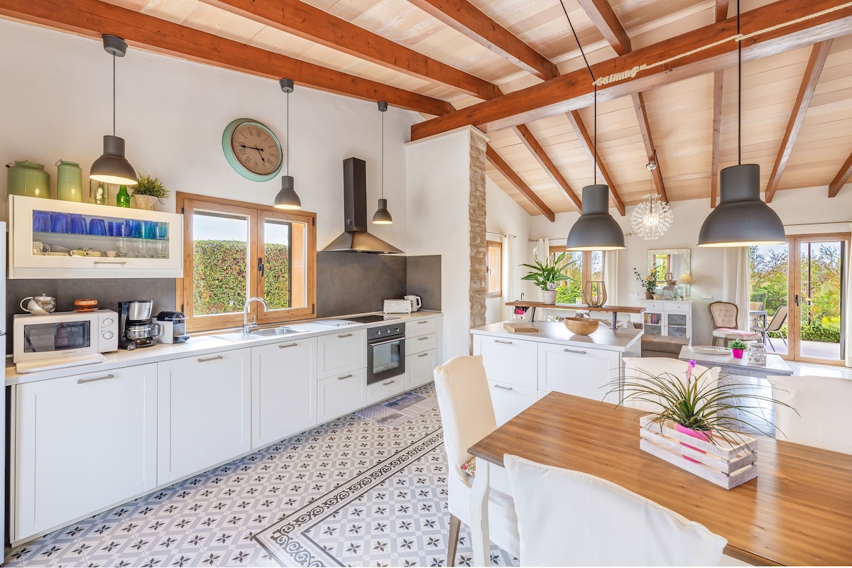 Esta casa es un proyecto que se inició en el 2005 y se a finalizado en el 2018. Se realizó en varios períodos pero ahora es un proyecto hecho realidad. Soy una enamorada de la arquitectura balear y esta casa es una muestra de la casa tradicional campesina Mallorquina. Esta decorada con muebles antiguos adquiridos en mercados de segunda mano y algunos de mi familia. Es una casa con mucha luz, acogedora donde uno siente el bien estar y la paz en medio de la naturaleza.