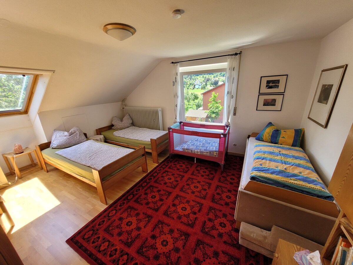El apartamento de vacaciones se encuentra en el sótano de nuestra casa y tiene una entrada independiente. Consta de una sala de estar/dormitorio, una cocina y un baño. El salón/dormitorio es luminoso y acogedor, equipado con una cama doble de 1,60 x 2,00 m. Cama supletoria de 0,80 x 1,90 m o cuna de viaje para 3. persona si es necesario. Ambos no son posibles al mismo tiempo. Baño con ducha y WC. El apartamento dispone de una cocina totalmente equipada. Se proporciona una silla de bebé si es necesario.