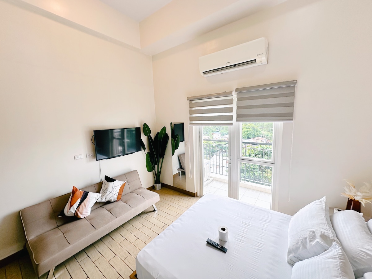 Relájate en este espacio tranquilo y elegante en SMDC Style Residences. Diseñado con cálidos neutros y texturas acogedoras, ofrece una mezcla perfecta de comodidad y elegancia moderna. Convenientemente ubicado junto a SM City Iloilo y cerca del Centro de Convenciones de Iloilo (ICC), Smallville, Festive Walk Mall, Sunset Blvd y el Museo de Arte Contemporáneo de Iloilo, lo que lo hace ideal para estancias de placer y de negocios.