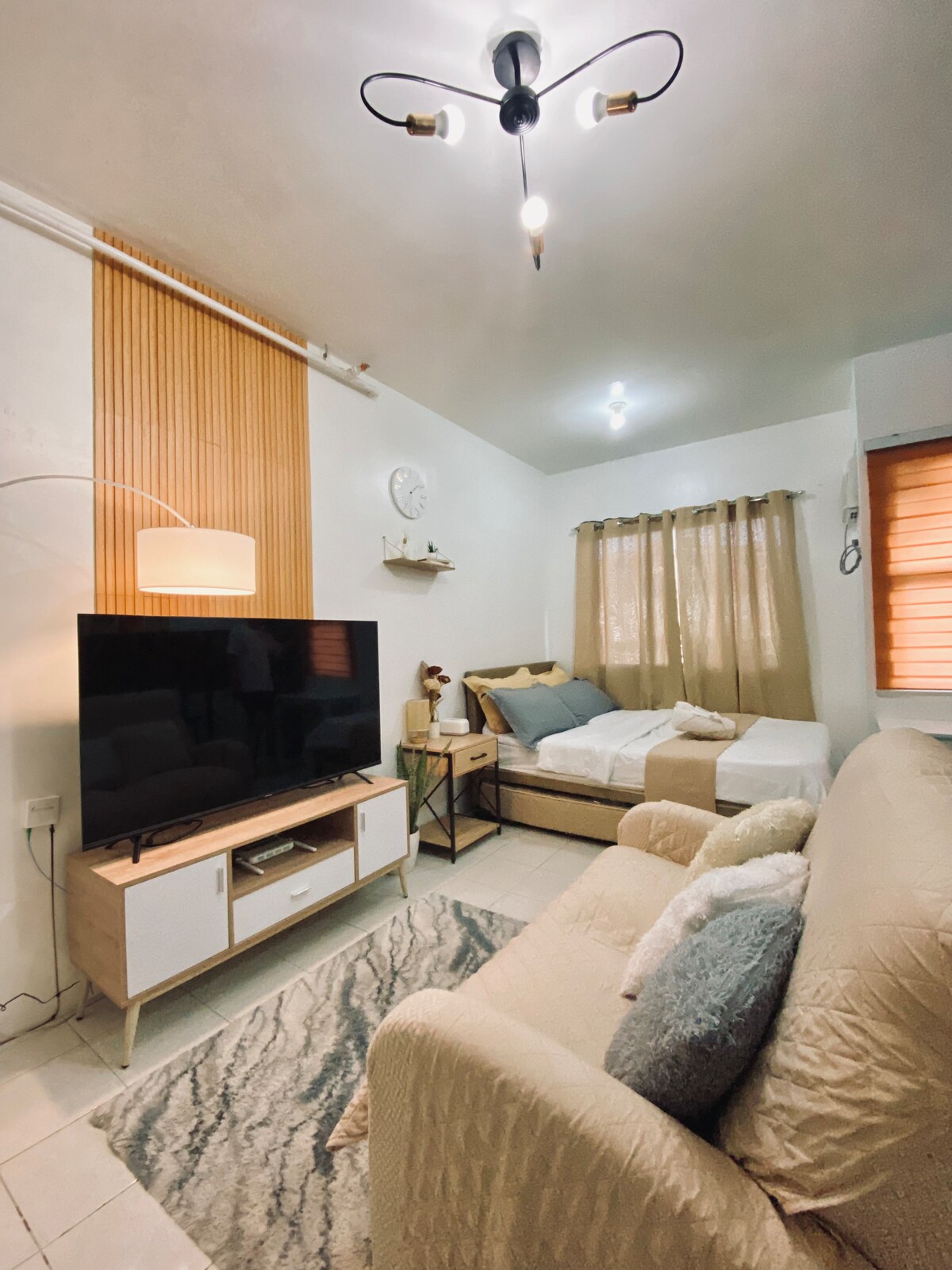 ✨ A Cozy Modern Nordic Café Vibe Studio in Tagaytay ✨ Relax and unwind in this stylish studio condo 🏡 nestled in the heart of Tagaytay, offering the perfect blend of convenience and tranquility. Designed with inspiration from a classic Italian coffee shop ☕ and a touch of modern industrial aesthetics, this serene space is ideal for couples, small families, or friends looking to escape the city and explore the nearby attractions 🌿.