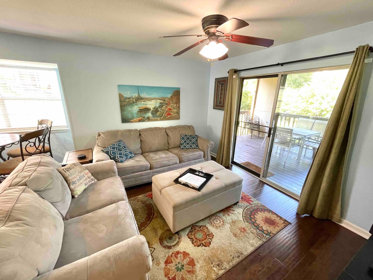 Descubre el lujo de Stonebridge, una comunidad de primer nivel a pocos minutos de Silver Dollar City y la franja de Branson con seguridad las 24 horas, piscinas, tenis, golf y mucho más. Apartamento de 1355 pies cuadrados con cocina totalmente equipada, patio cerrado, cama tamaño king en el dormitorio principal, queen en el segundo dormitorio y un sofá cama queen en la sala de estar. 3 televisores inteligentes grandes, electrodomésticos de tamaño completo que incluyen cafetera y molinillo Bunn, comedor separado y lavandería en la unidad. ¡Perfecto para familias o personas que viajan solas!