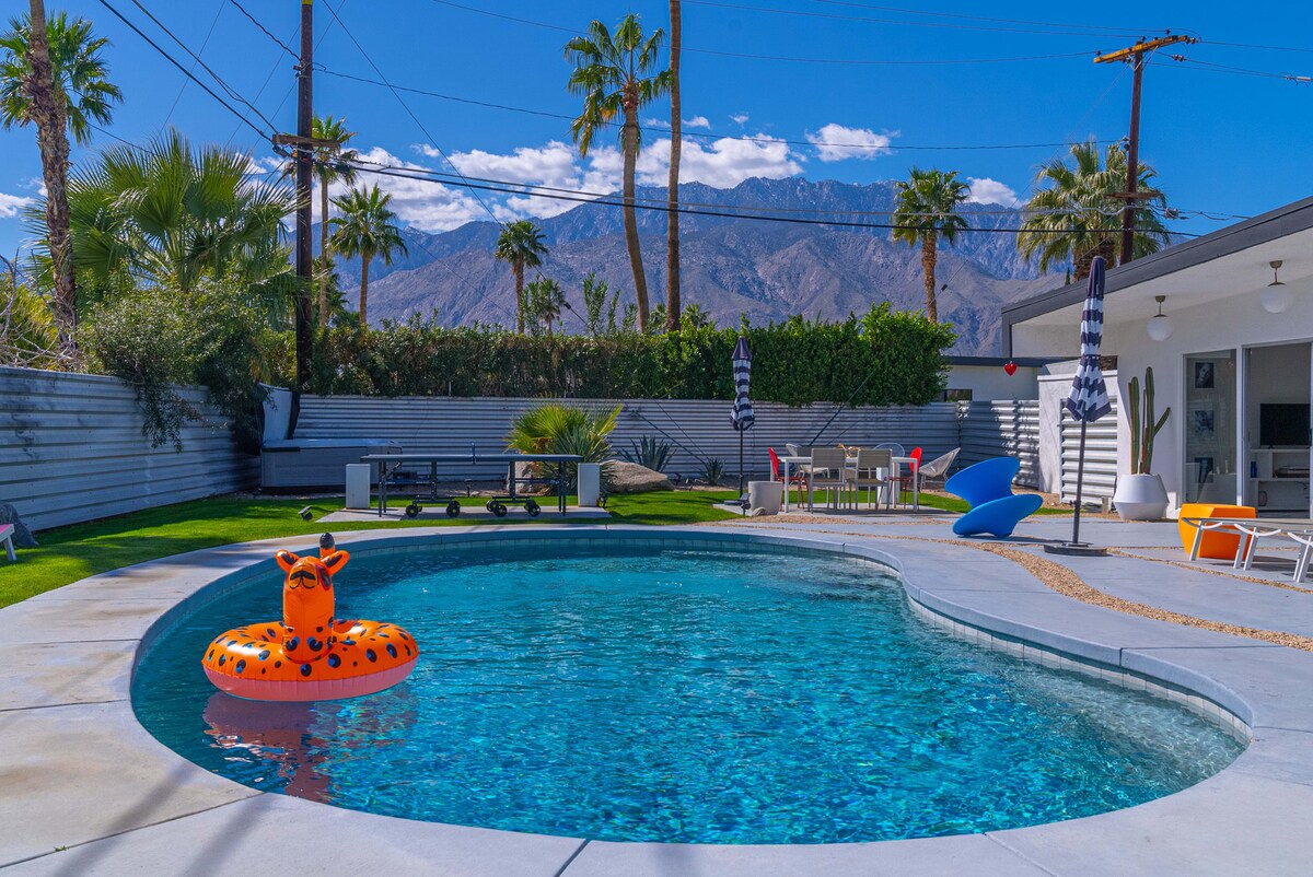 Disfruta del sol californiano con un tranquilo baño en la piscina privada y el spa. Disfruta de una barbacoa o relájate al aire libre en más de medio acre en este espacioso refugio. Juega Cornhole, relájate en las cabañas, en las tumbonas junto a la chimenea o en el sofá al aire libre. No te debes perder las hermosas vistas a la montaña. Número de identificación de la ciudad de Palm Springs # 4059 Calefacción de la piscina y el spa si es necesario 50 $ al día. Spa solo $25 por día * Alquiler de largo alcance Tesla Model 3, incluye carga S1 gratuita en la casa. Comunícate con Brandi para consultar la disponibilidad.