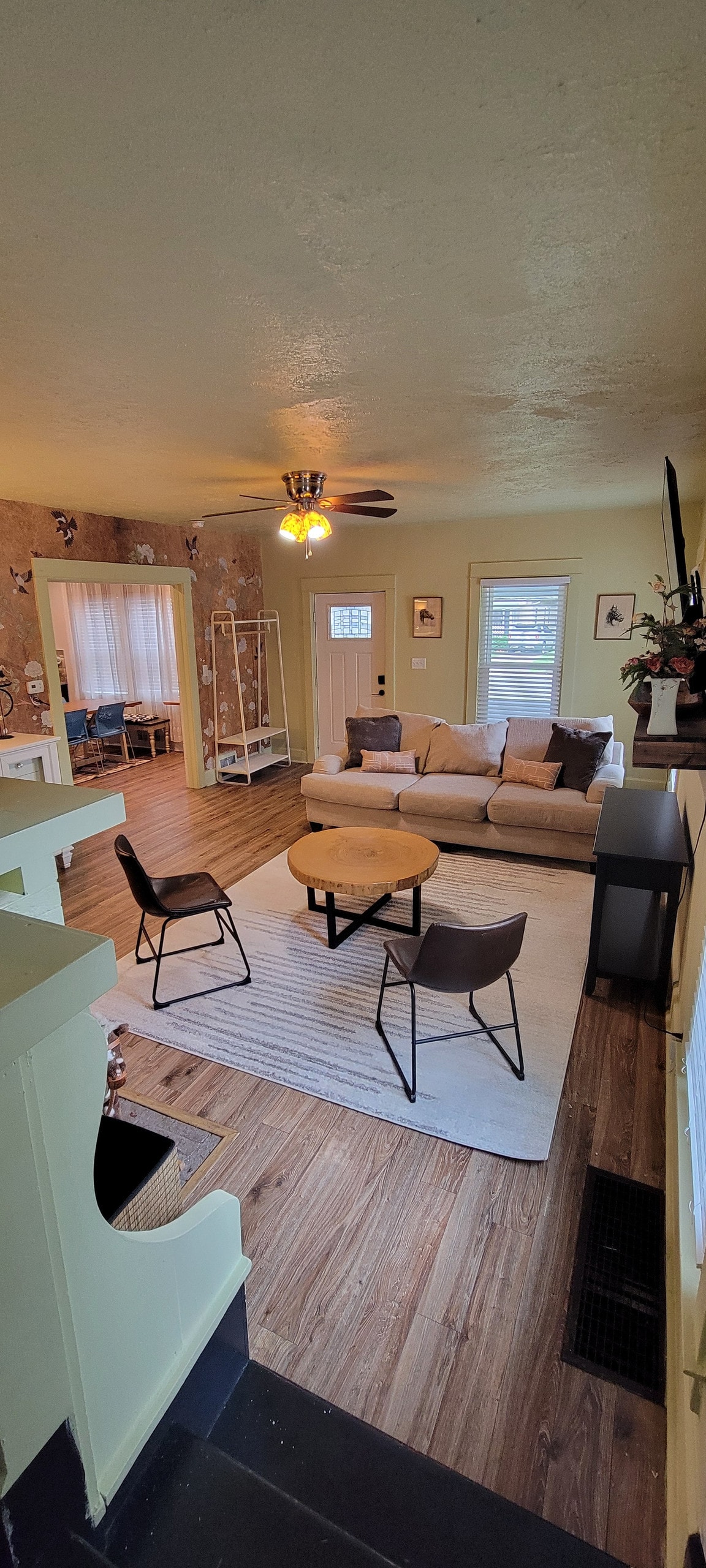 Esperamos recibirte en una suite privada que es el alojamiento de huéspedes de nuestra casa. Tendrás una entrada privada y 3 habitaciones para ti. Hay una sala de estar con una mesa y sillas, un dormitorio con una cama tamaño queen (mesitas de noche, vestidor y armario con perchas para tu uso) y un baño completo recién remodelado. También hay una pequeña cocina en el pasillo, que es un gabinete antiguo Hoosier equipado con microondas, mininevera, cafetera y olla de agua caliente.