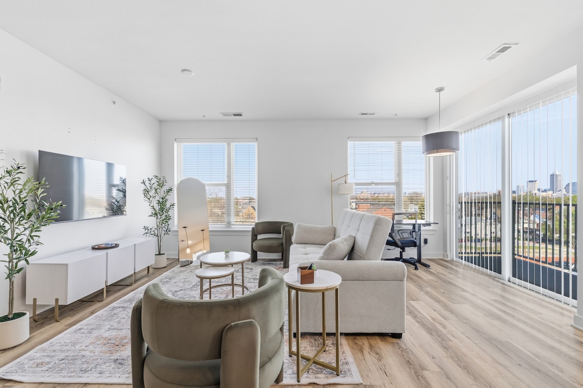 Alójate en el corazón del centro de Indianápolis con estacionamiento GRATUITO en garaje y acceso directo al Indianapolis Skywalk. A pocos pasos del Centro de Convenciones, de restaurantes y de las principales atracciones del centro de la ciudad. Este luminoso y moderno departamento en el sexto piso es ideal para asistentes a convenciones, aficionados al deporte, viajeros de negocios y escapadas de fin de semana. Disfruta de una cocina totalmente equipada, Wi-Fi rápido, televisores con Roku, espacio de trabajo, lavadora/secadora, acceso al gimnasio y colchones cómodos para una estadía relajante.