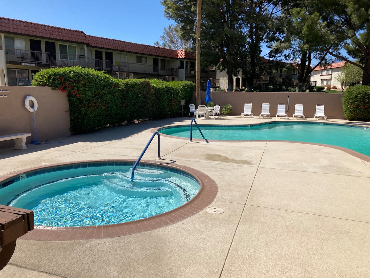 Quiet retreat in Palm Desert 5 min from El Paseo shops and dining, convenient to Palm Springs and Indian Wells. Updated suite with 1 bedroom, bath and living room/kitchenette. Private backyard with outdoor kitchen stove, sink and BBQ. Pool and hot tub are for your exclusive use. Safe walkable neighborhood. Close to best Coachella Valley golf and tennis. Primary renter must be 25 yrs old and provide a gov. I.D. per STR rules.Self check in available after 6pm. Dog friendly, 420 and gay friendly.