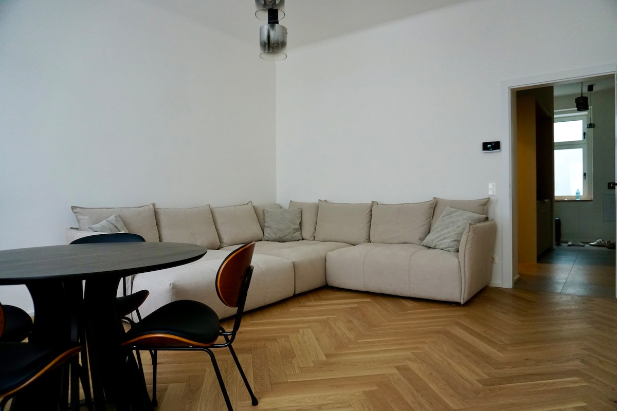Inglés: ¿Vida urbana pero cómoda? Bienvenido al Nest, donde Viena se siente como un pueblo mientras que la vibrante vida de la ciudad está a solo 10 minutos. El espacioso apartamento ofrece todas las comodidades que tu corazón desea: internet rápido, una cama grande y cómoda, aire acondicionado, un sofá acogedor para largas noches de cine y una cocina bien equipada para experimentos culinarios. Básicamente, no necesitas salir de casa en todo el estilo de la moda pandémica.