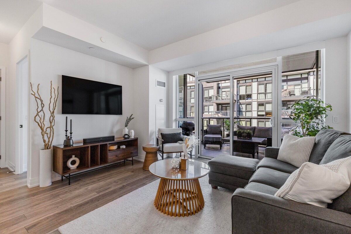 Te damos la bienvenida a un paraíso bohemio en el corazón de Friday Harbour. Disfruta de una experiencia relajante a solo 1 hora de Toronto. Este condominio bellamente diseñado fue diseñado para que tu experiencia en Friday Harbour sea lo mejor posible. **Conveniencia** Uno de los pocos condominios con salida directa al fogón y a las barbacoas del patio. A pocos pasos de restaurantes, senderos naturales, playa y paseo marítimo, golf, eventos de música en vivo todos los fines de semana.
