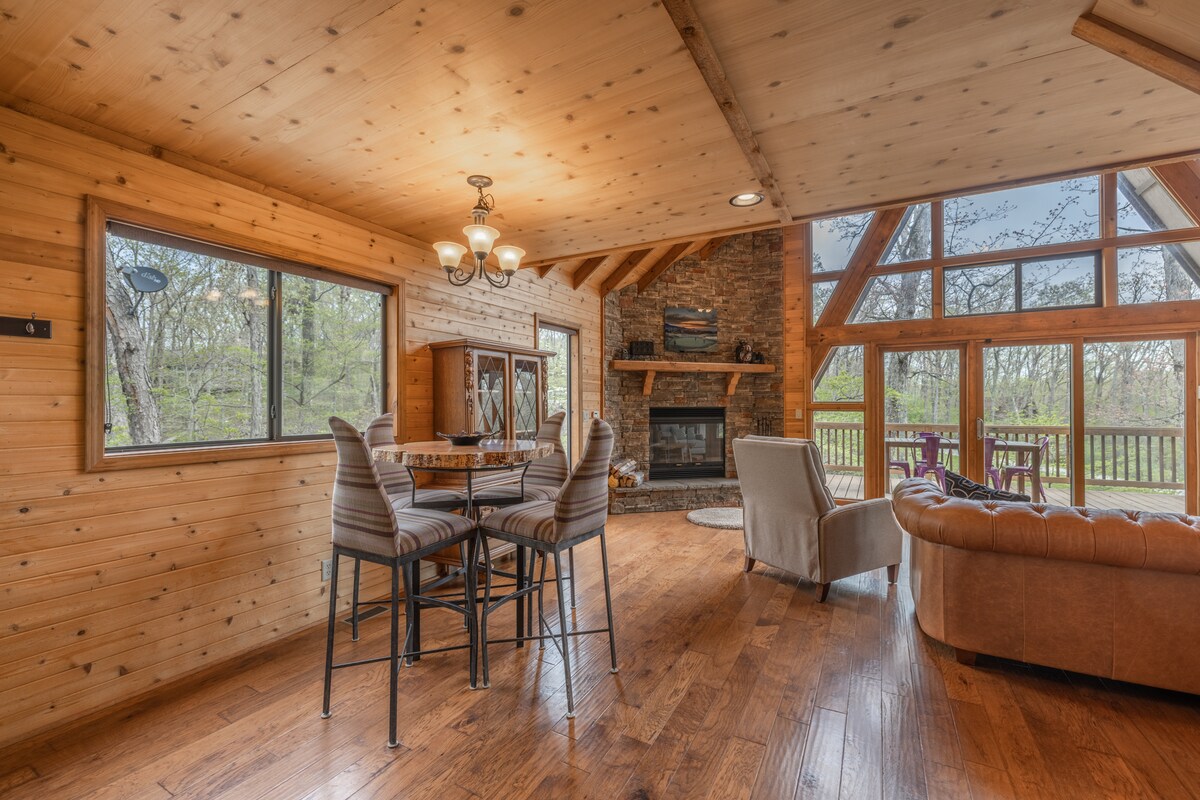 Ubicada en el bosque con vistas al lago Foxfire, esta casa alpina ofrece la escapada perfecta para las cuatro estaciones. Cuando cae la nieve, se transforma en el refugio de invierno por excelencia. Acurrúcate junto a la chimenea de piedra, donde las vistas al lago están enmarcadas por árboles helados. ¡A medida que el clima se calienta, el lago llama! Disfruta de acceso directo al lago Foxfire desde nuestro muelle privado. Pasa tus días pescando, nadando o simplemente tomando el sol. Este chalet te ayudará a encontrar alegría y relajación, sea cual sea la temporada.