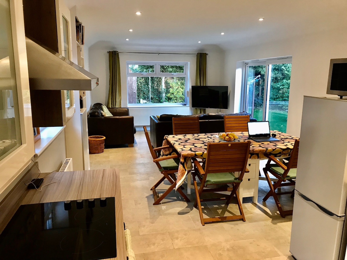 Nuestro apartamento en la primera planta ofrece una habitación con dos camas individuales con baño con ducha, cocina, internet, TV y calefacción por suelo radiante. Aspecto soleado con ventanas a ambos lados. Vistas al jardín y al campo. La casa está situada a unos 100 metros de la carretera y, por lo tanto, es tranquila. Tiene mucho aparcamiento fuera de la carretera y una parada de autobús en el exterior. A menos de 400 yardas tenemos un pub, restaurantes chinos e indios, cafeterías y quioscos. El supermercado más cercano está a una milla de distancia.