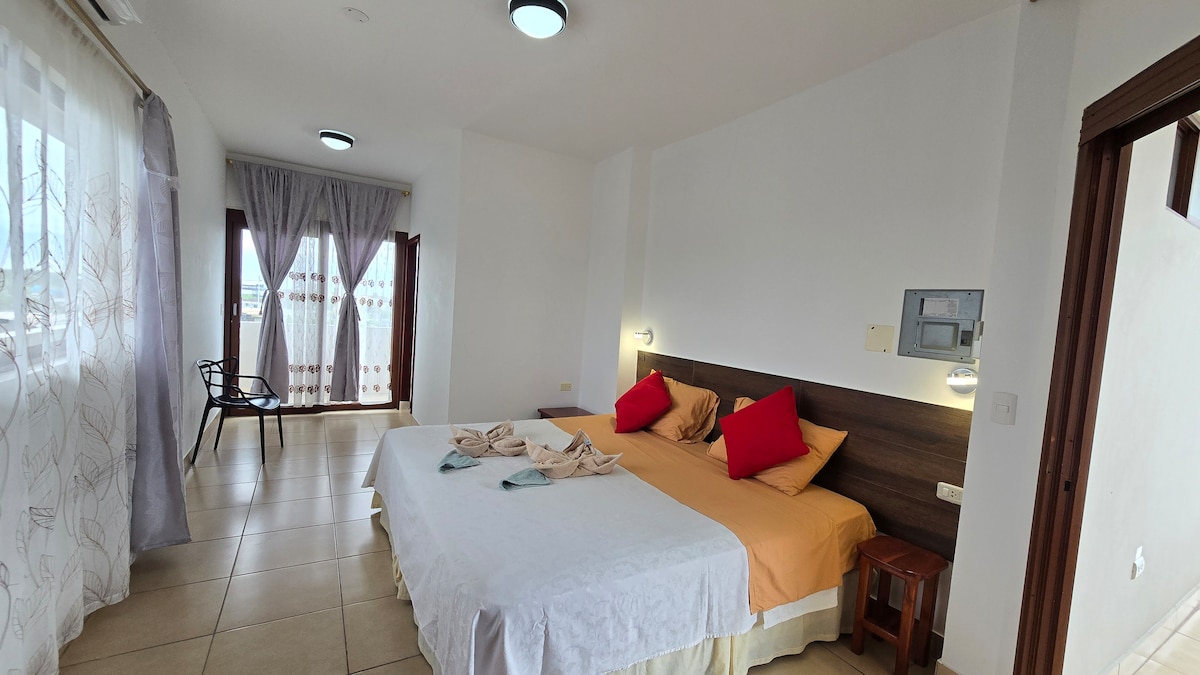 La habitación está ubicada a una cuadra de la playa de Puerto Villamil, la habitación cuenta con una cama matrimonial King size, baño privado. Es perfecto para una pareja viajera que busca disfrutar al máximo de su estadía, noches de encanto, vista increíble a una laguna, comida exquisita y ambiente de primera.