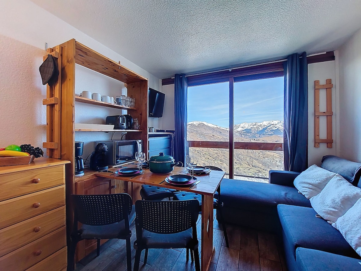 Todos los descuentos ya están incluidos. Reserva la propiedad si tus fechas de viaje están disponibles. A continuación, consulta todos los detalles del anuncio Apartamento de 1 habitación de 25 m2 en el primer piso, orientado al sur. Hermosos muebles: vestíbulo con 1 x 2 literas (90 cm). Sala/comedor con TV (pantalla plana). Alcoba para dormir con 1 cama francesa (140 cm). Cocina pequeña (horno, 2 placas de inducción, cafetera eléctrica, microondas combinado). Baño/WC. Calefacción eléctrica.