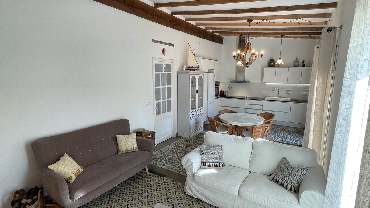 Casa típica de pueblo, completamente reformada y equipada. Muy acogedora y práctica. Encontrará mucha tranquilidad. Es una casa con mucha luz. Está situada a 5 minutos de todos los servicios del pueblo (farmacia, bares, restaurantes, supermercados, tiendas,...). Para ir a las playas hay 15 minutos andando. Está ubicada en una zona del pueblo muy tranquila. Es fácil encontrar aparcamiento. Podrá aparcar muy cerca de la casa. No dispone de wifi.